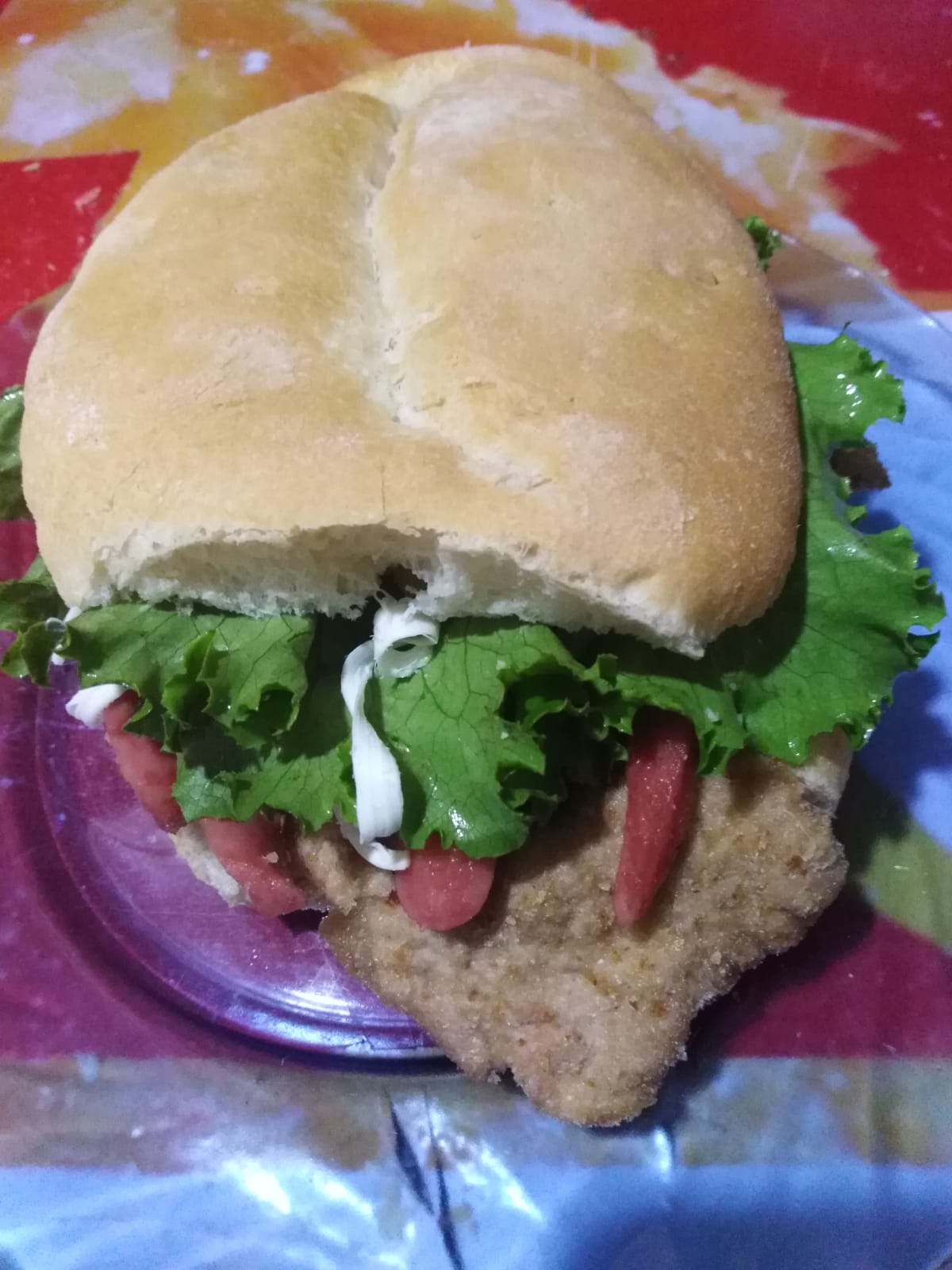 Huevo, milanesa , salchicha, jamón, aguacate, jitomate, cebolla y quesillo.