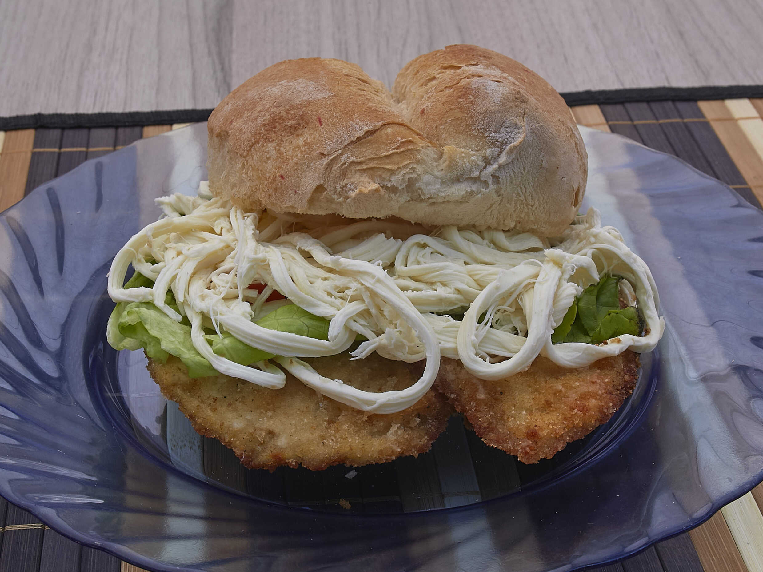 Milanesa de pollo, quesillo, mayonesa, lechuga, jitomate, aguacate y cebolla.