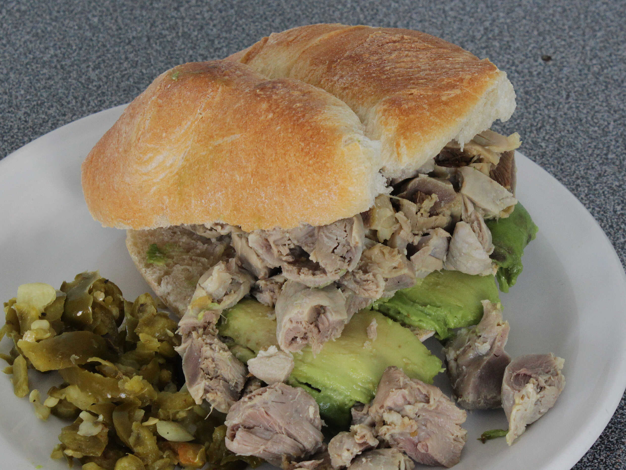 Orden con 4 piezas, aguacate, cebolla y pierna de cerdo. (Porción personal)