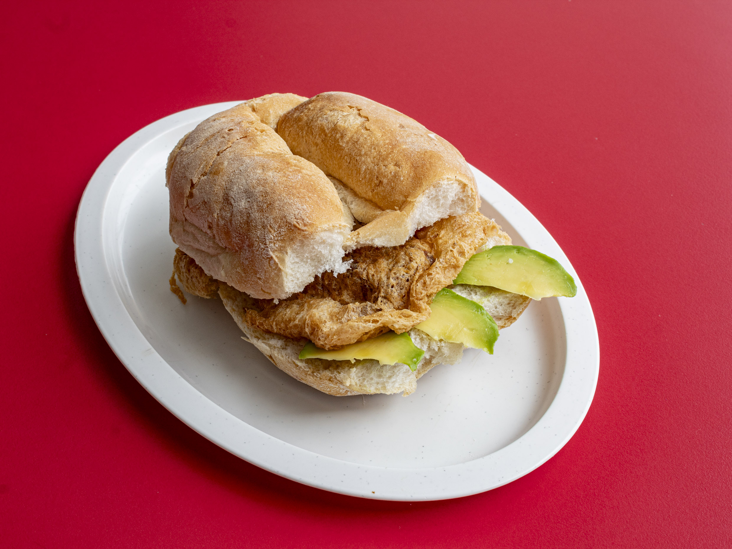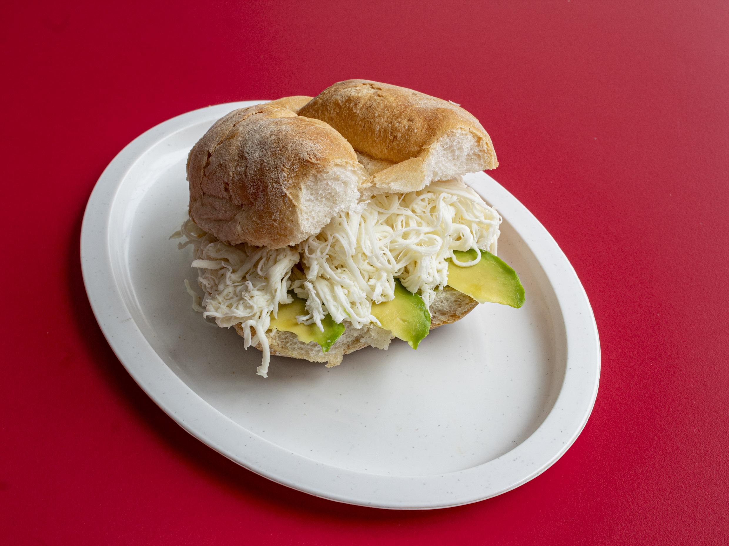 1 Torta de pollo (100gr), jamón, tocino y queso fundido, base de aguacate, frijol, aceite de comer y picante al gusto.