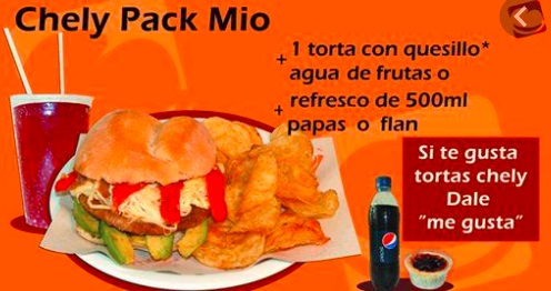 1 Tortas de cualquier sabor con quesillo (excepto especialidades) 1 refresco o 1 agua, 1 orden de papas o un flan.