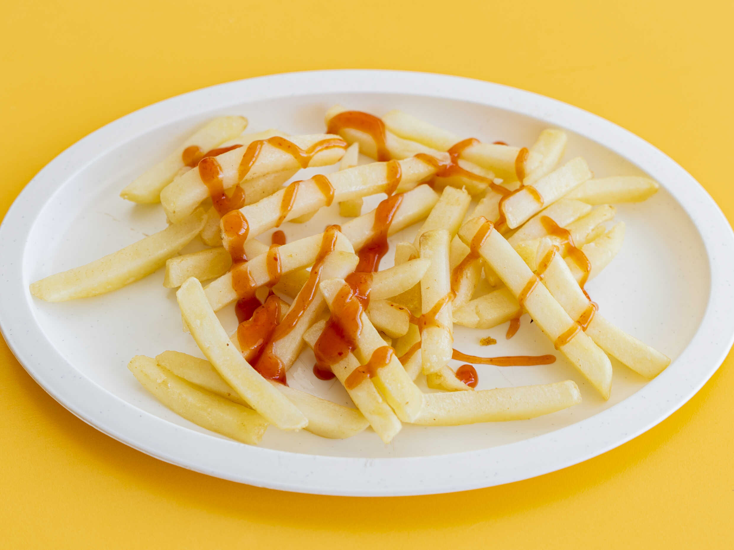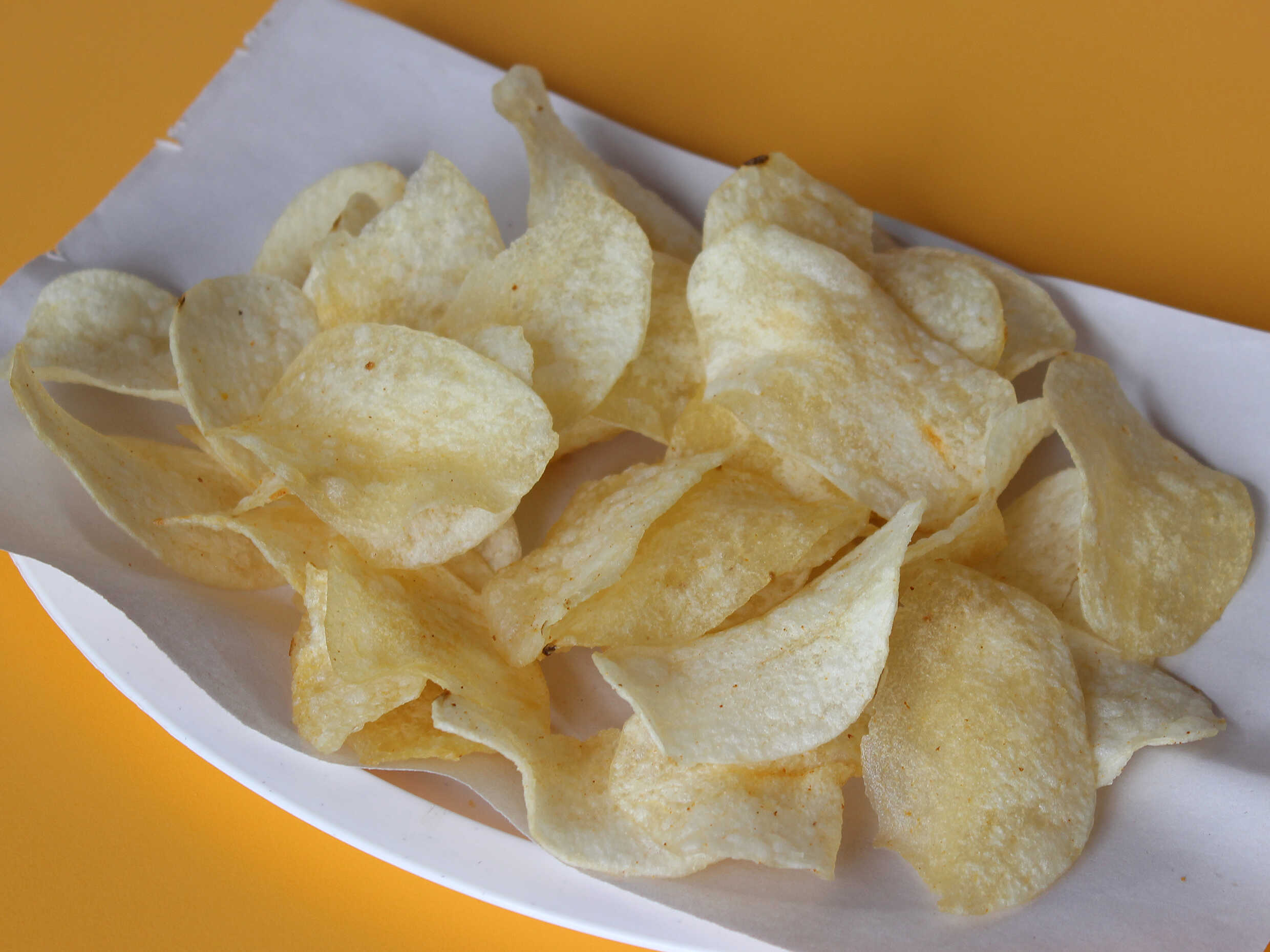 65 gramos papas en rodajas hervidas en aceite con un toque de sal