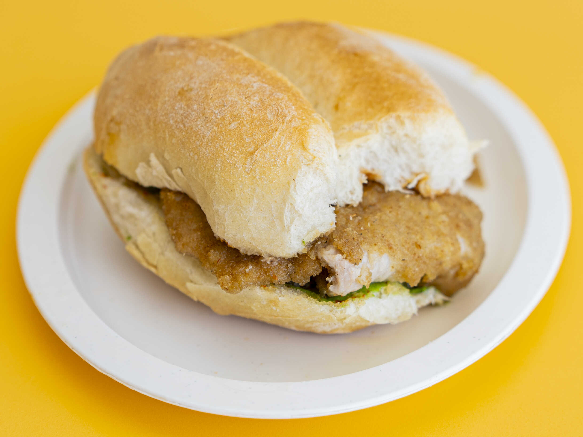 Milanesa de pollo jamon y queso amarillo Base de aguacate, frijol, aceite de comer y picante al gusto.