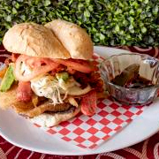 Clásica torta con jamón, frijoles caseros, aguacate y jitomate.