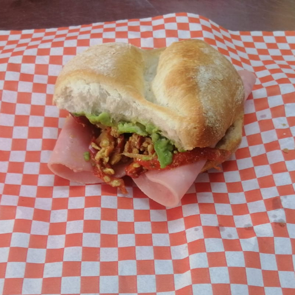 milanesa de puerco, aguacate, frijoles, jamon, quesillo, salchicha y picante