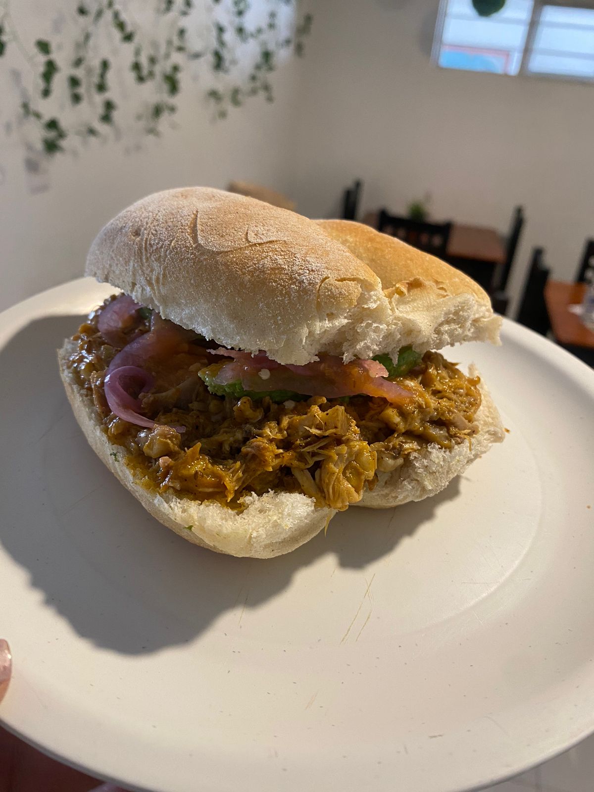 Cochinita, aguacate, cebolla morada, salsa de habanero.