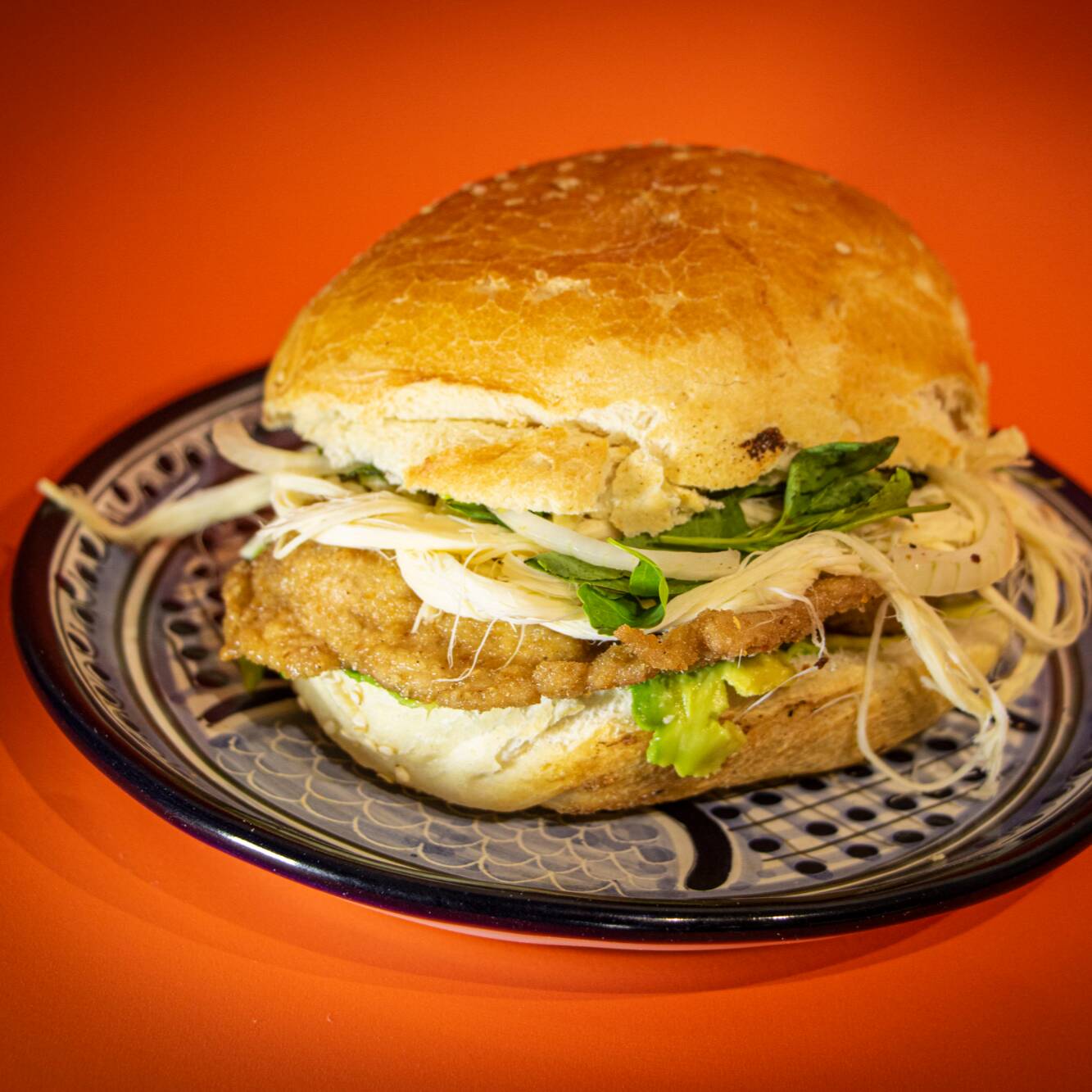 Quesillo, milanesa de cerdo, carne enchilada, salchicha, jamón, aguacate, cebolla, pápalo y picante a elegir.