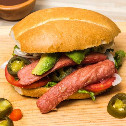 Salchicha mayonesa frijol aguacate jitomate cebolla y chile