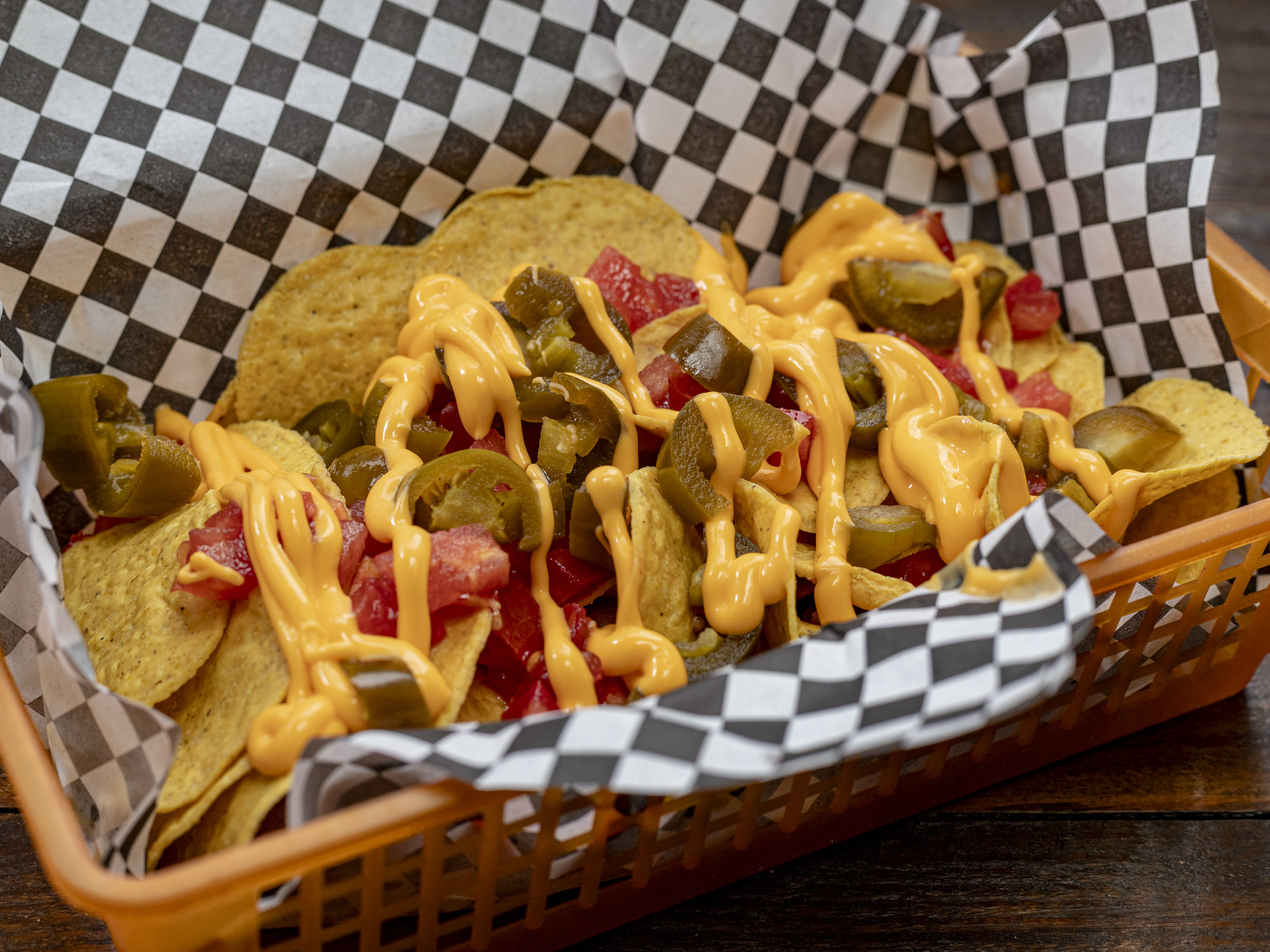 1 Orden de nachos, 3 aros de cebolla, 1 dedo de queso, cubiertos con queso derretido, jitomate picado y cualquiera de nuestras salsas especiales