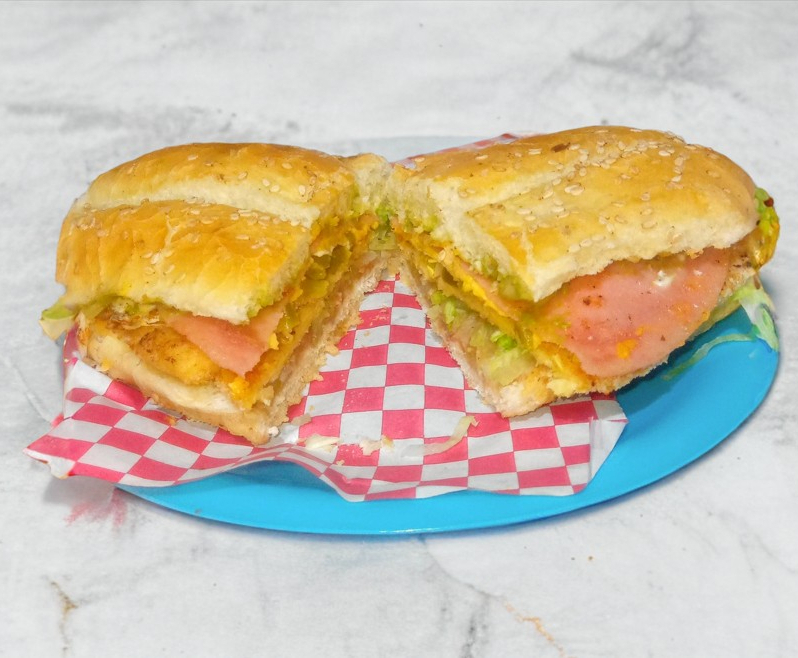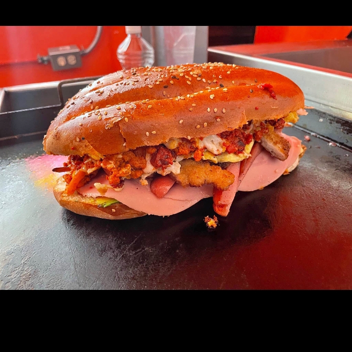 telera Chuleta salchicha jamón queso Oaxaca queso Mozarella aguacate jitomate mayonesa