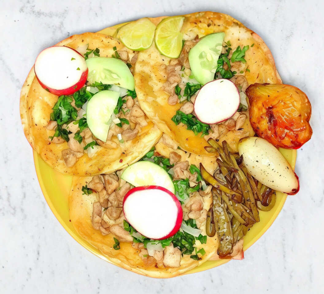 Tacos Con Doble tortilla bistec longaniza silantro cebolla salsa limon