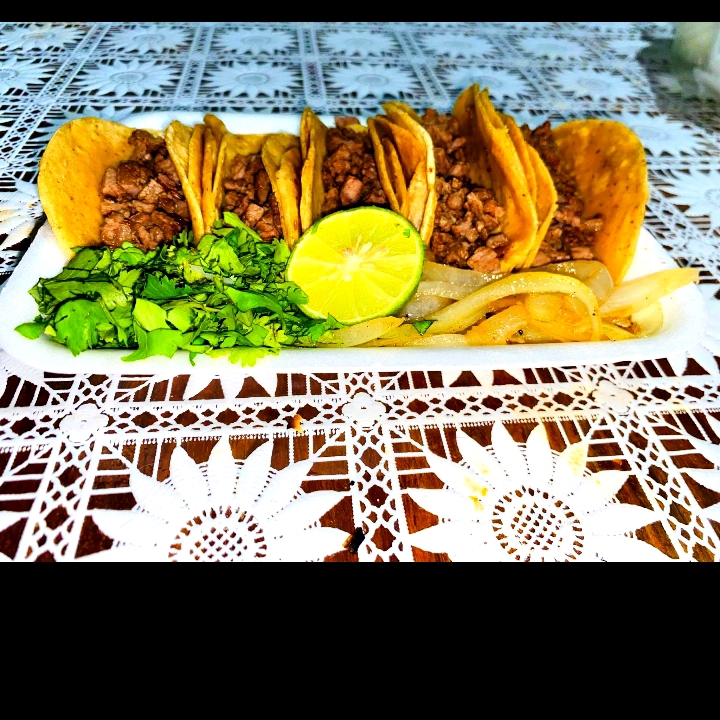 Orden de 5 tacos incluye doble tortilla carne silantro cebolla salsa limon