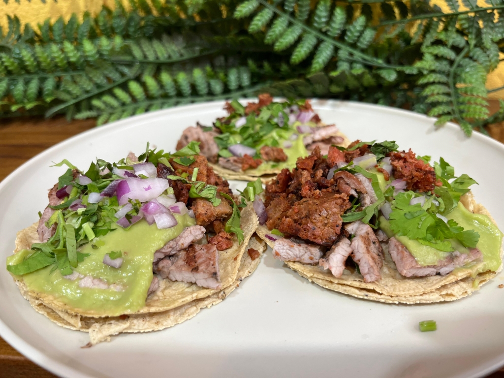 Sirloin y Longaniza entre 2 Tostadas de Maíz
