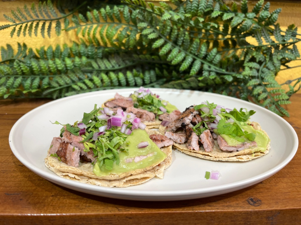 Deliciosa carne Asada de Sirloin de Primera. Incluye: Tortillas, Guacamole, Cilantro, Cebolla, Cebollitas, y Salsas