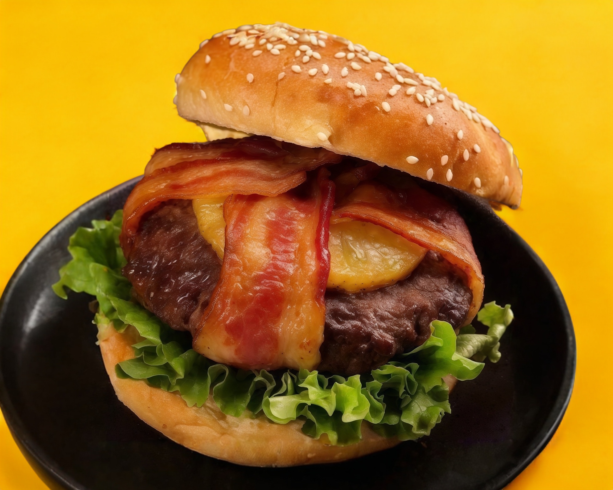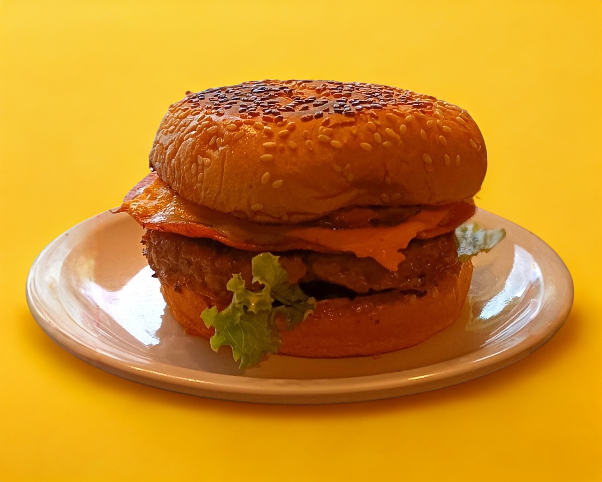 arne Mixta, Queso Mozzarella fundido, Jamon, Queso amarillo, Lechuga, Jitomate, y Aros de Cebolla, Aderezada con Mayoneza, Mostaza y Salsa BBQ