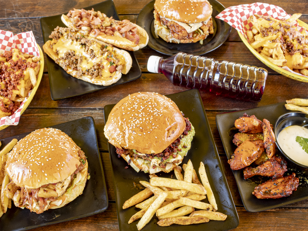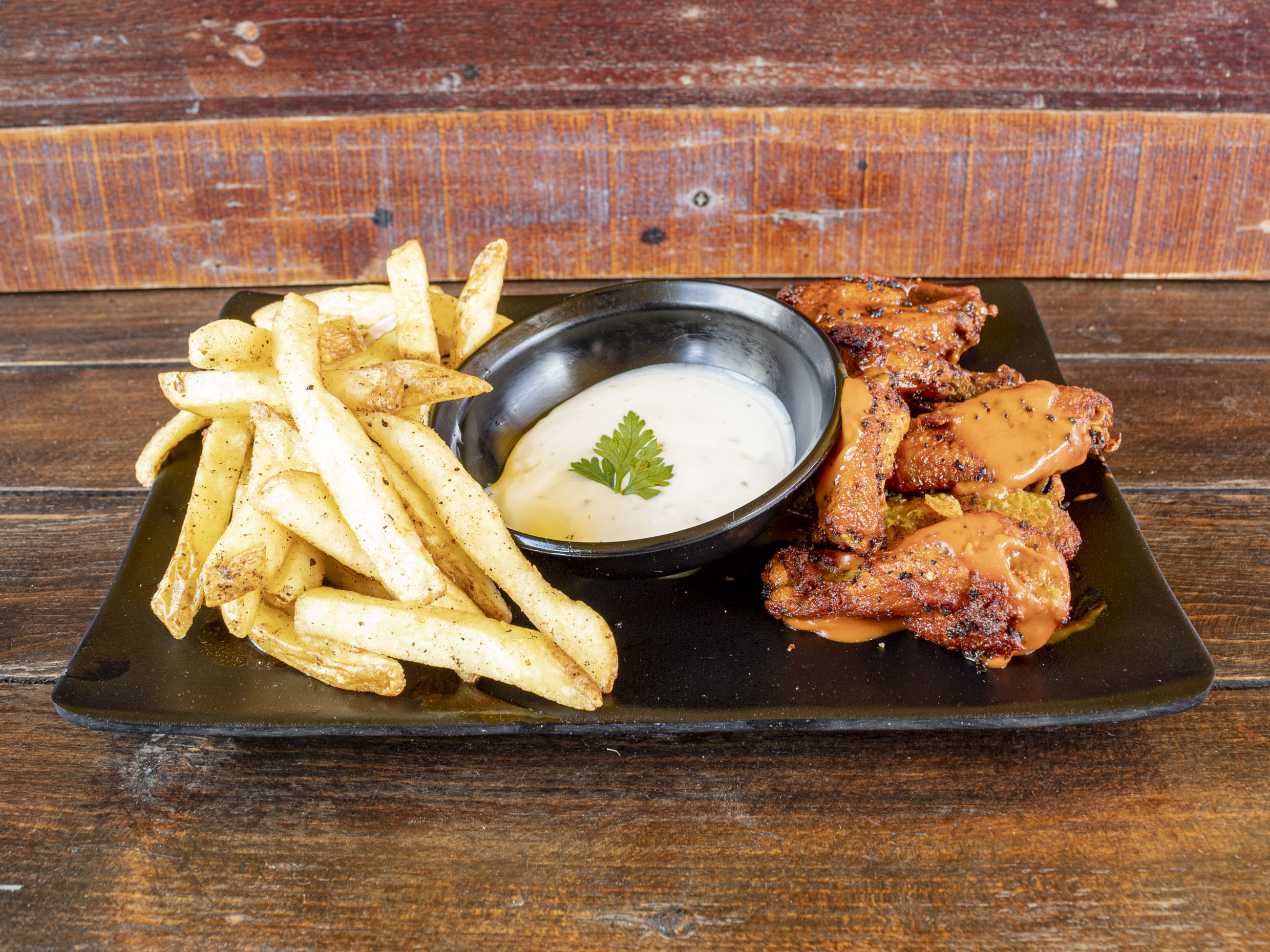 Hamburguesa a elegir más alitas bañadas en tu salsa favorita.