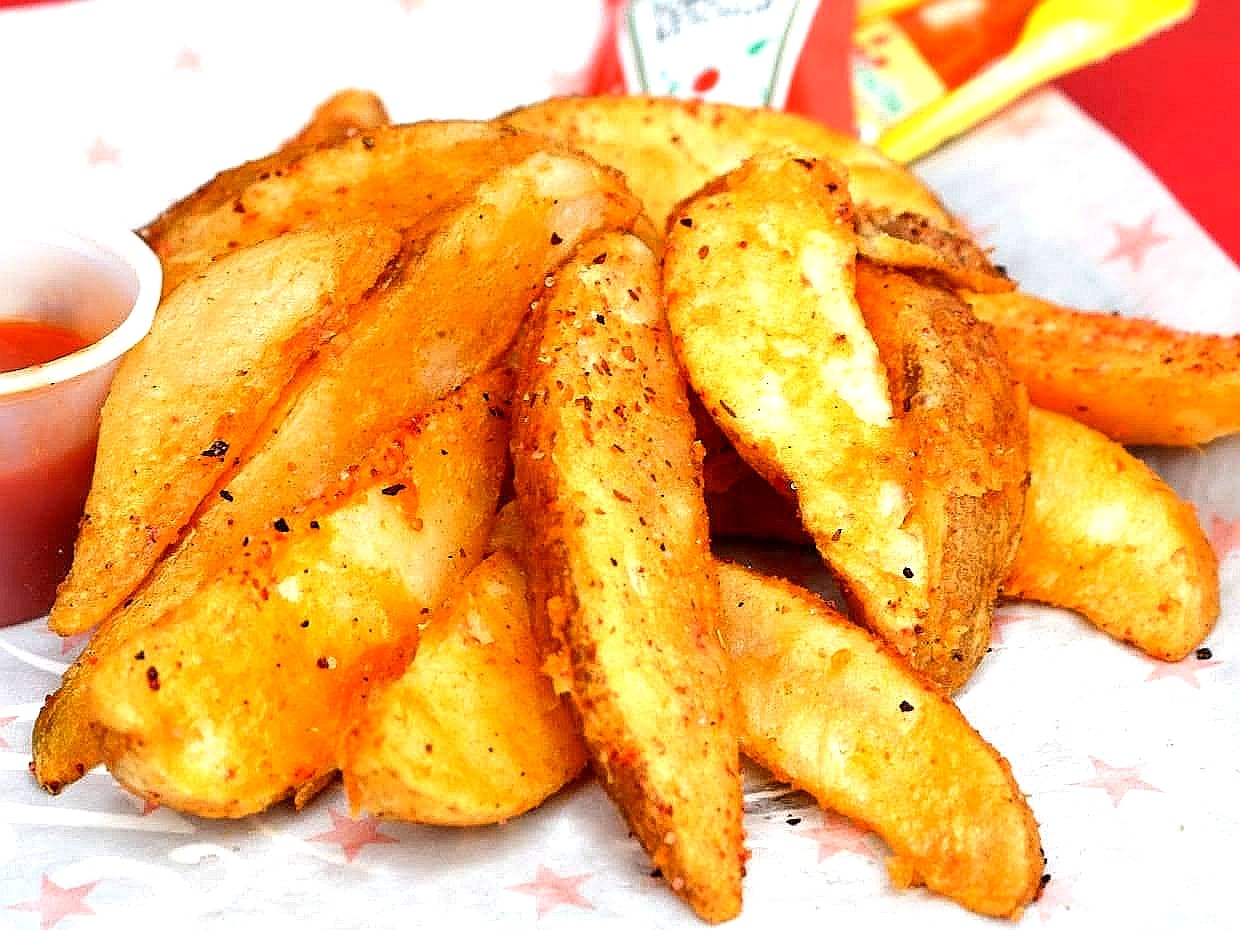 Deliciosas papas acompañadas de salchicha, queso de nachos y cátsup.
