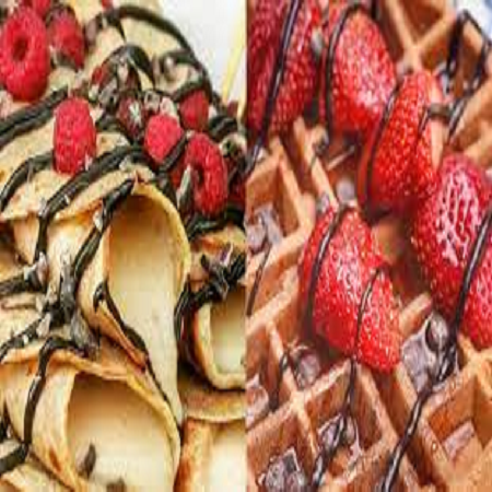 Delicioso waffle dulce con 2 ingredientes a elegir.