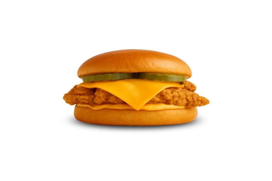 POLLO FRITO (90 G), QUESO CHEDDAR (15 G), PEPINILLOS Y ADEREZO.