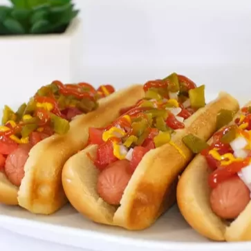 Pan,salchicha,cebolla,jitomate,jalapeño y aderezos