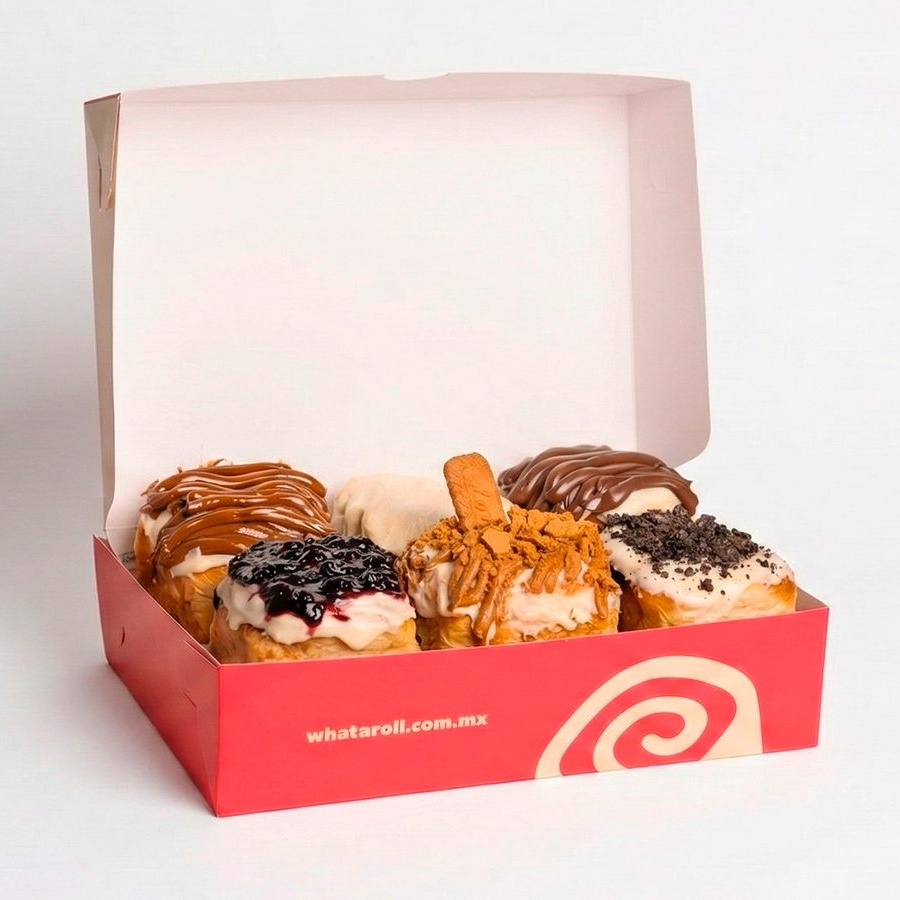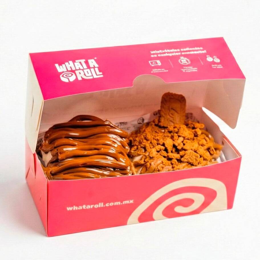 Esponjoso roll relleno de canela con topping de dulce de leche