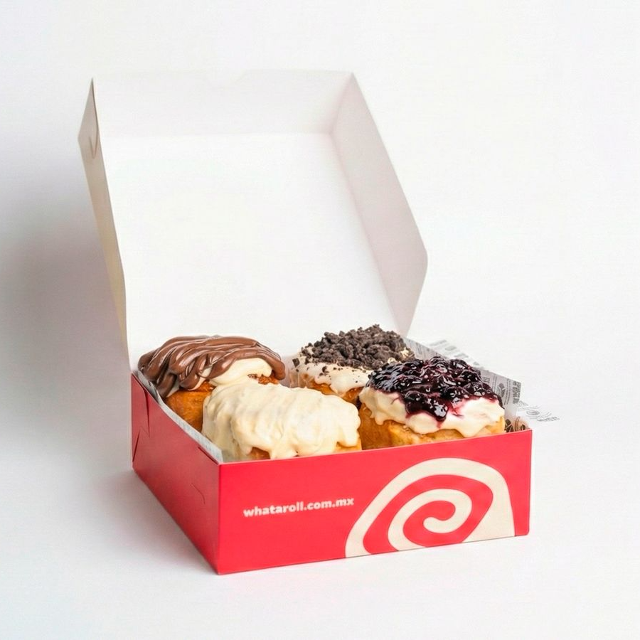 Esponjoso roll relleno de canela con topping de queso crema ligeramente dulce.