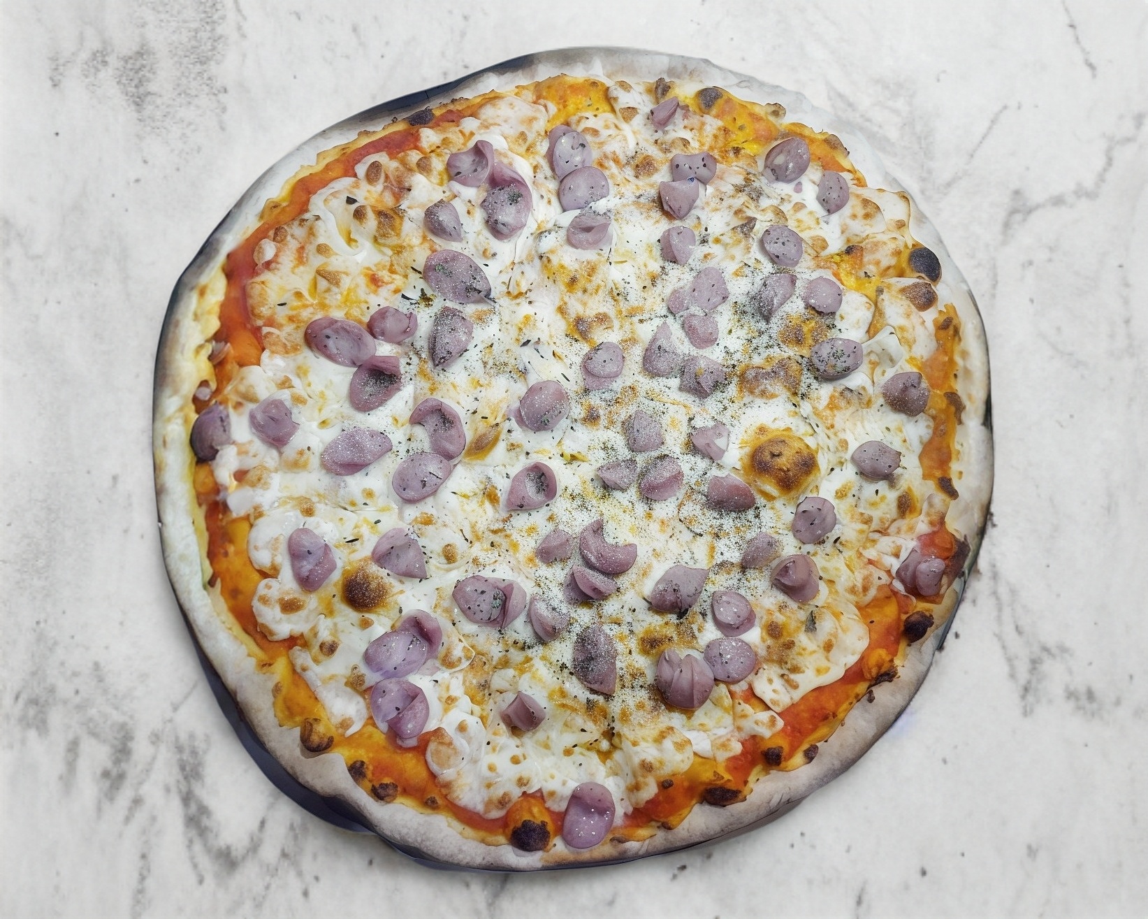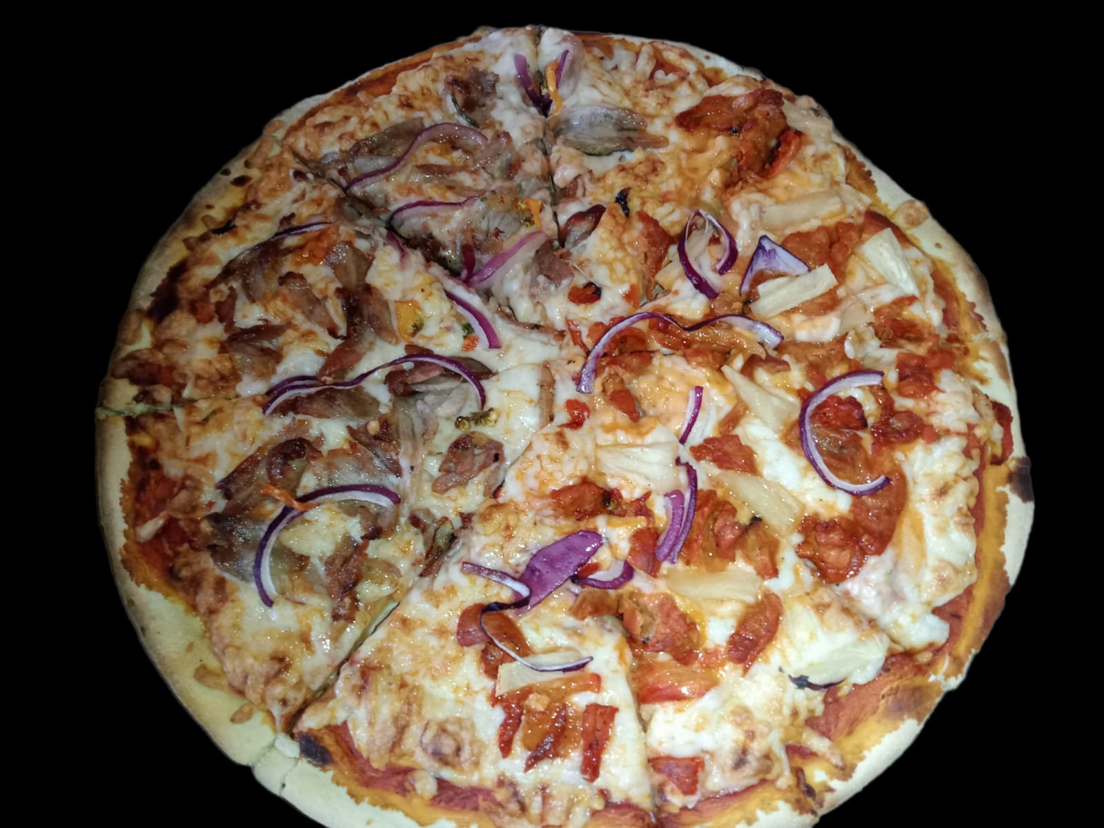 Queso mozarella, salsa pomodoro,carne árabe ,cebolla morada, habanero