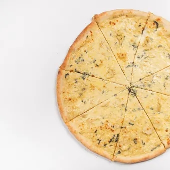 Pizza con queso mozzarella, gorgonzola, crema y parmesano 8 rebanadas