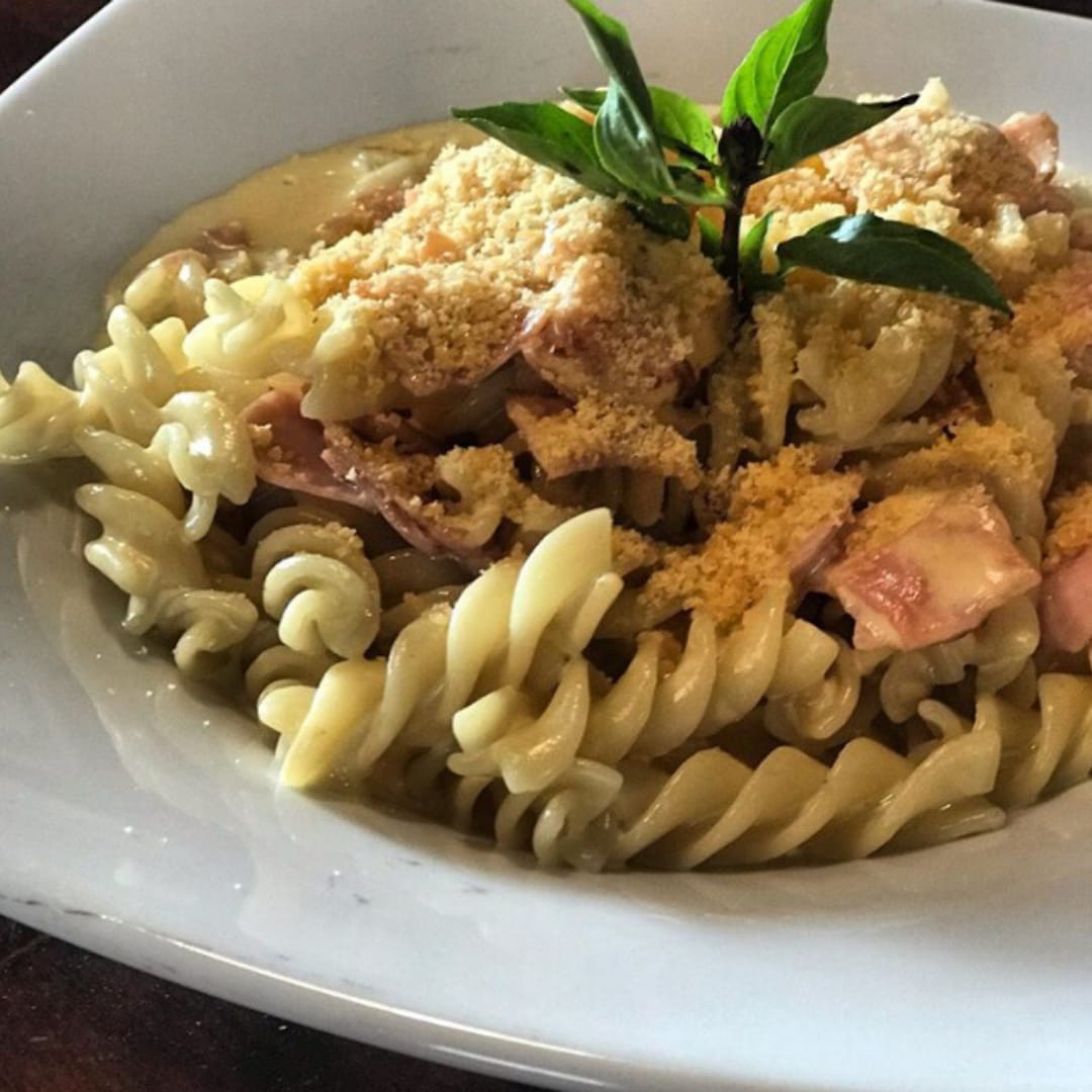 Salsa a base de crema, tocino, yema de huevo y queso parmesano. Cremosa y con un sabor inigualable.