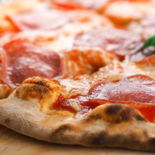 Masa Tradicional de pizza, salsa para pizza, queso mozzarella para fundir, pepperoni y mas queso encima.