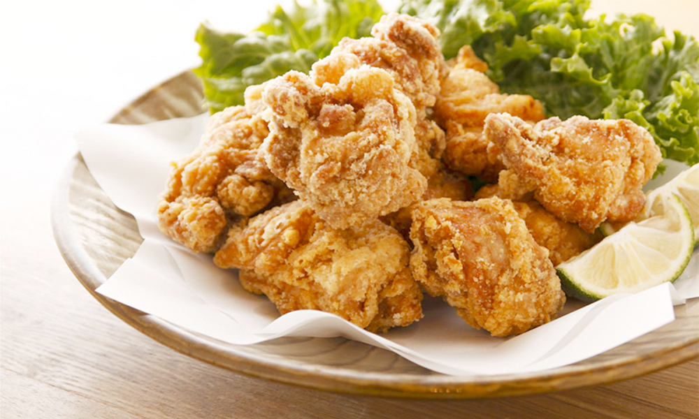Pollo en pasta de gengibre, acompañado de aderezo de la casa