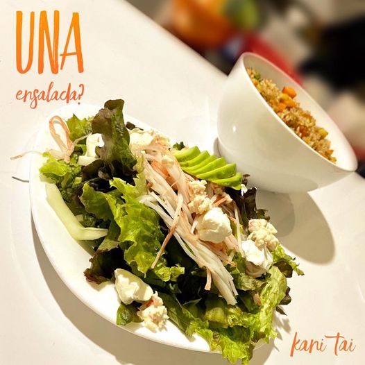 Lechuga, pepino, aguacate, aderezo tampico, perlas de queso, Philadelphia y cangrejo, acompañado de aderezo de la casa.