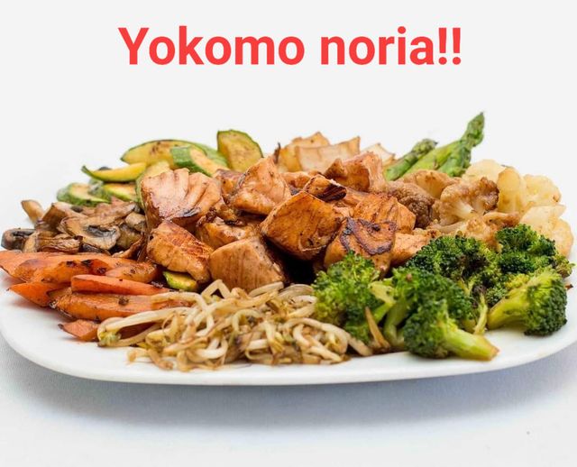 Pollo, arrachera y camarón, con verduras a la plancha (calabaza, zanahoria, cebolla, champiñon, brocoli, pimiento y germen de soya).