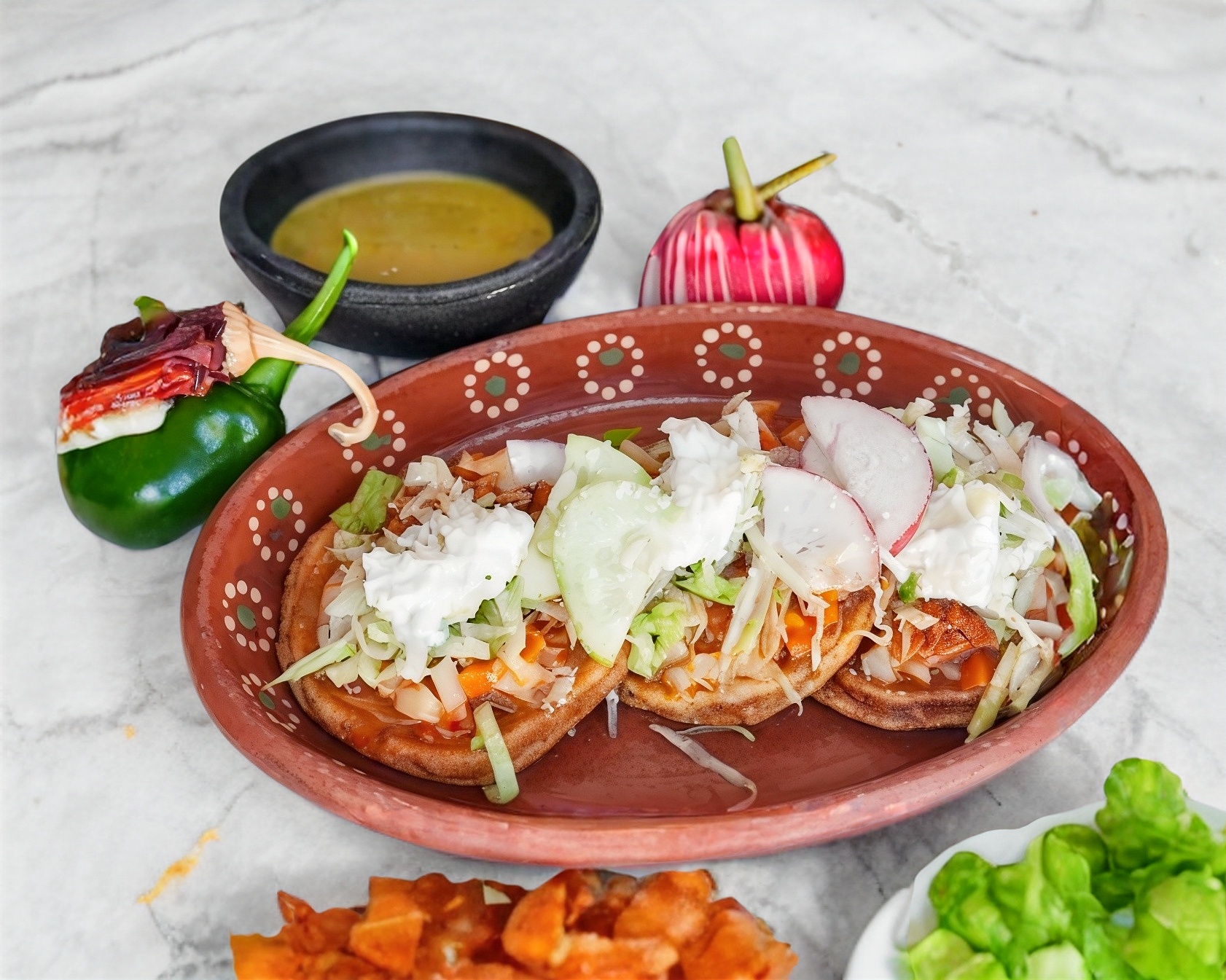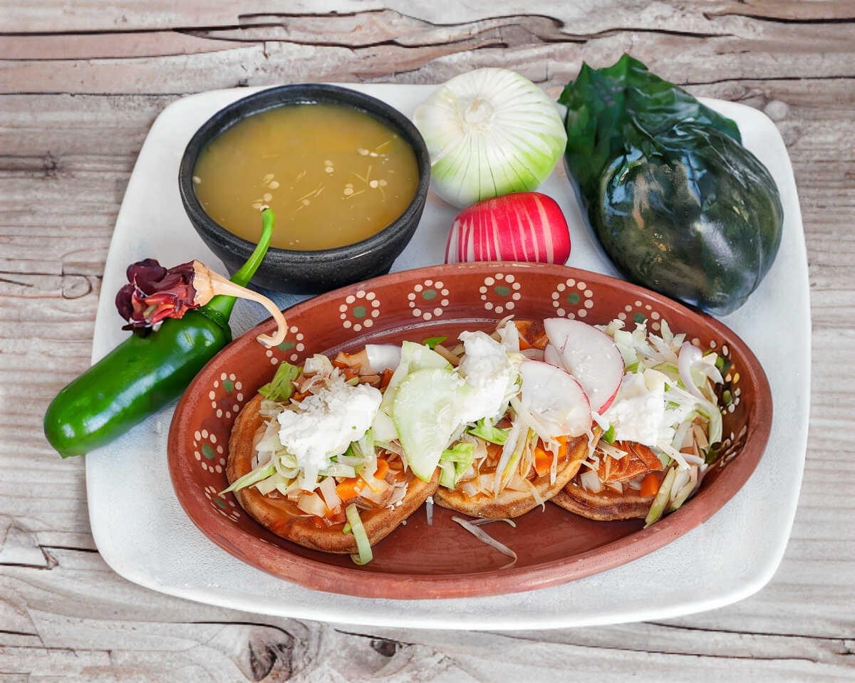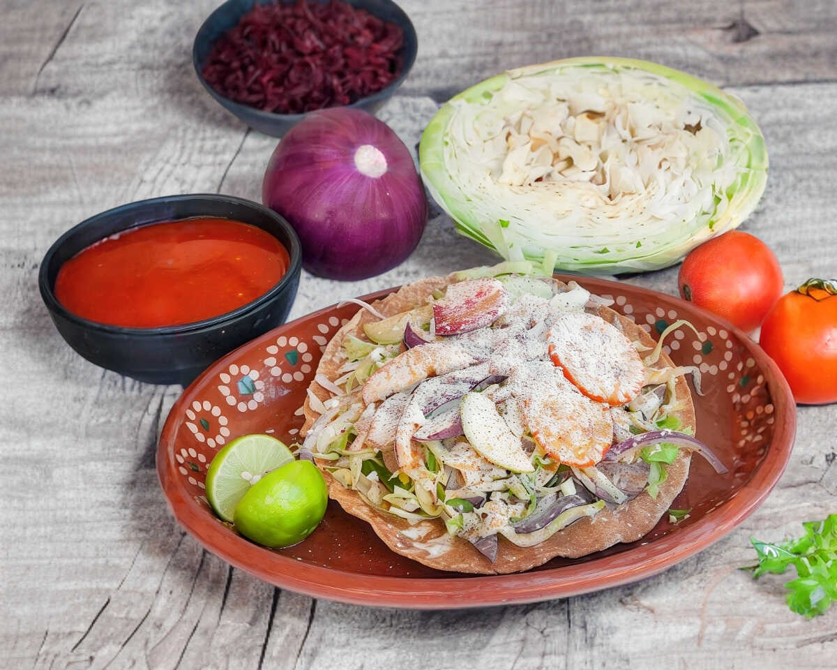 Con frijoles, Lechuga, jitomate, cebolla y Rabanos