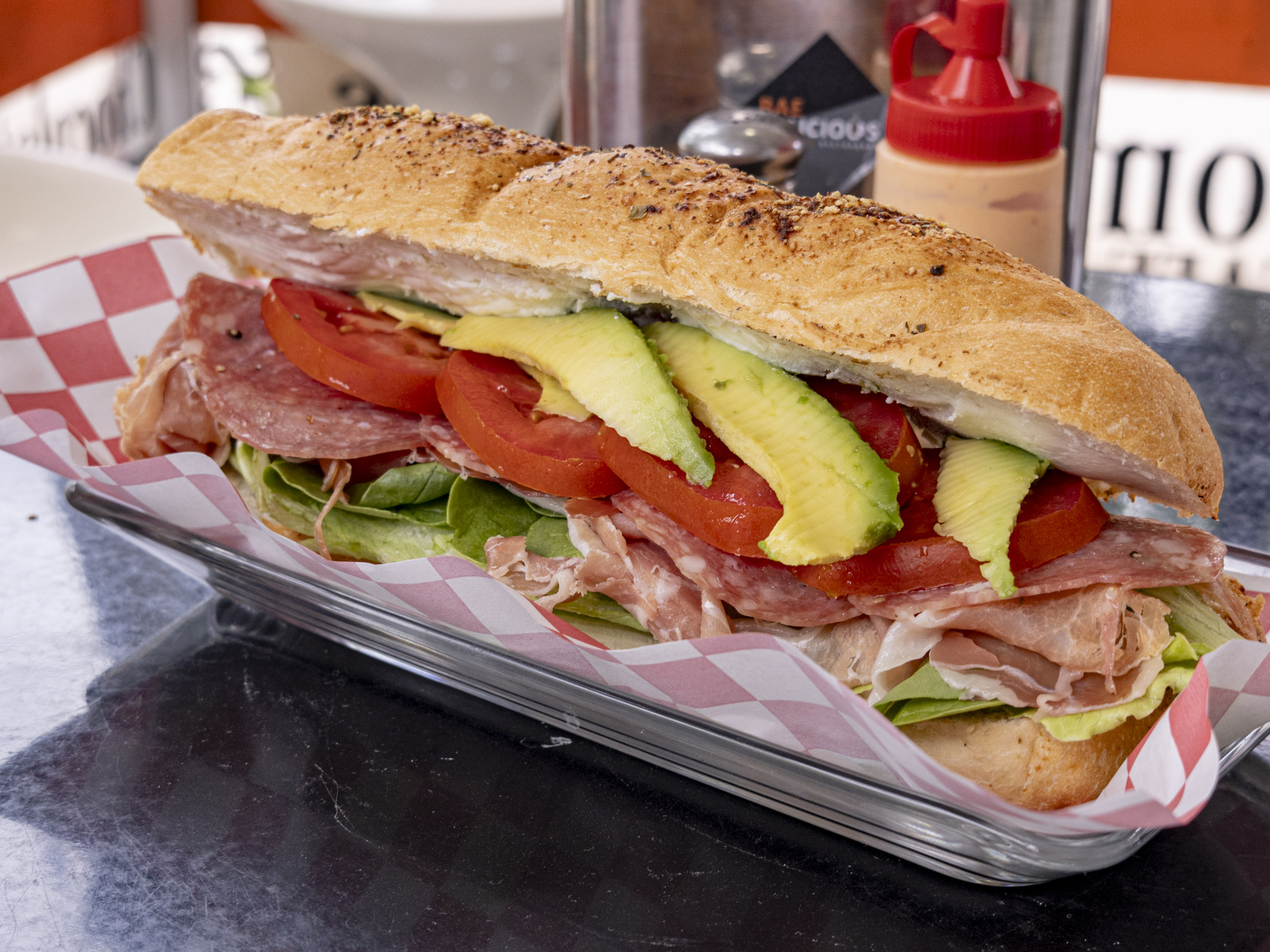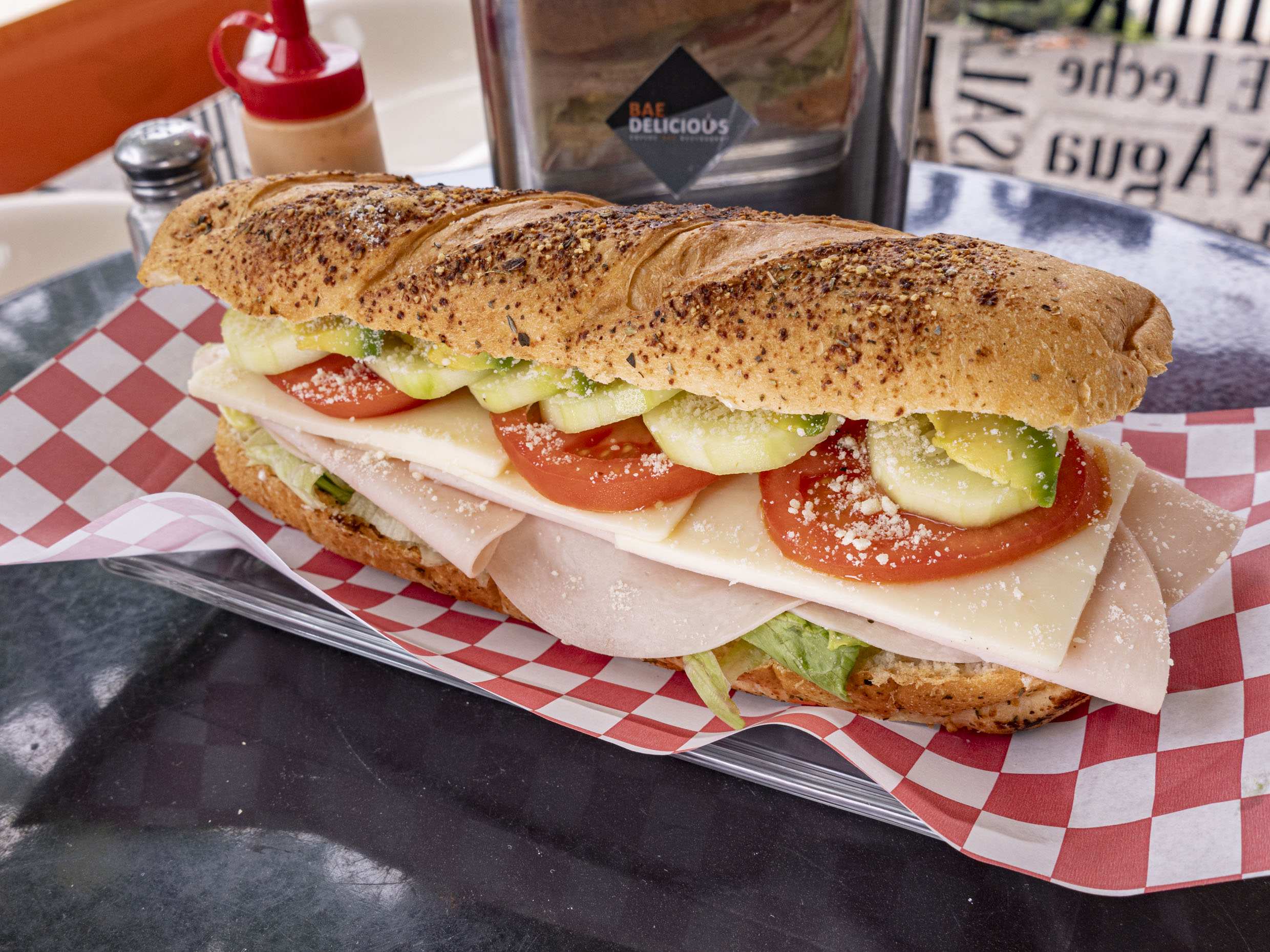 Jamón de pechuga de pavo, queso manchego, lechuga, jitomate, pepino, aguacate y queso parmesano