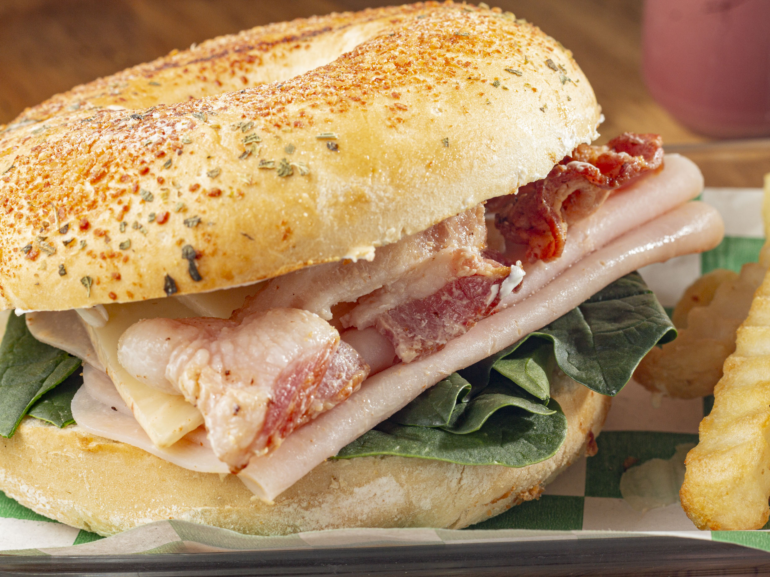 Jamón de pavo, tocino, queso philadelphia y espinaca