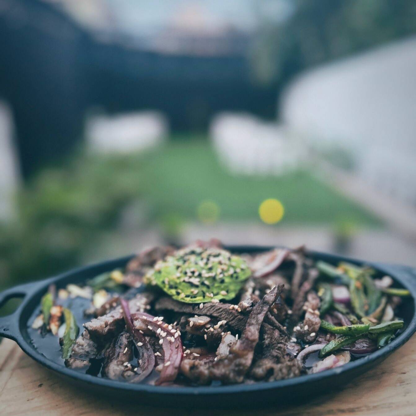 200 gramos de rib eye al grill sazonado con nuestra receta de salsas negras y verduras dandole un sabor citrico y ligeramente picante.