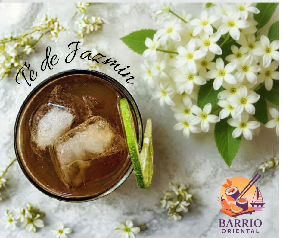 Infusión tradicional de té verde aromatizado con flores de jazmín, servido frío o caliente.