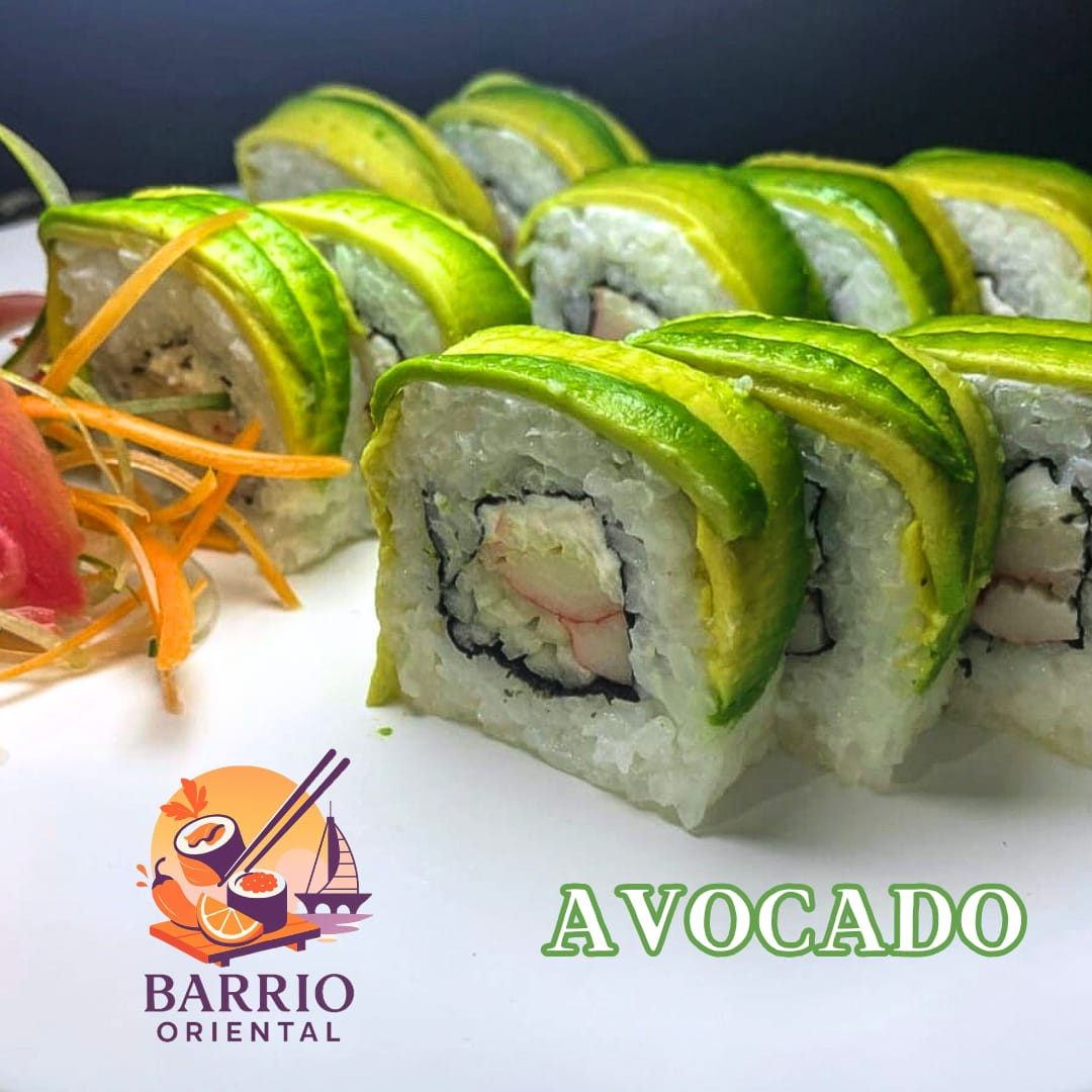 Rollo cubierto de aguacate con relleno de marisco a elección.