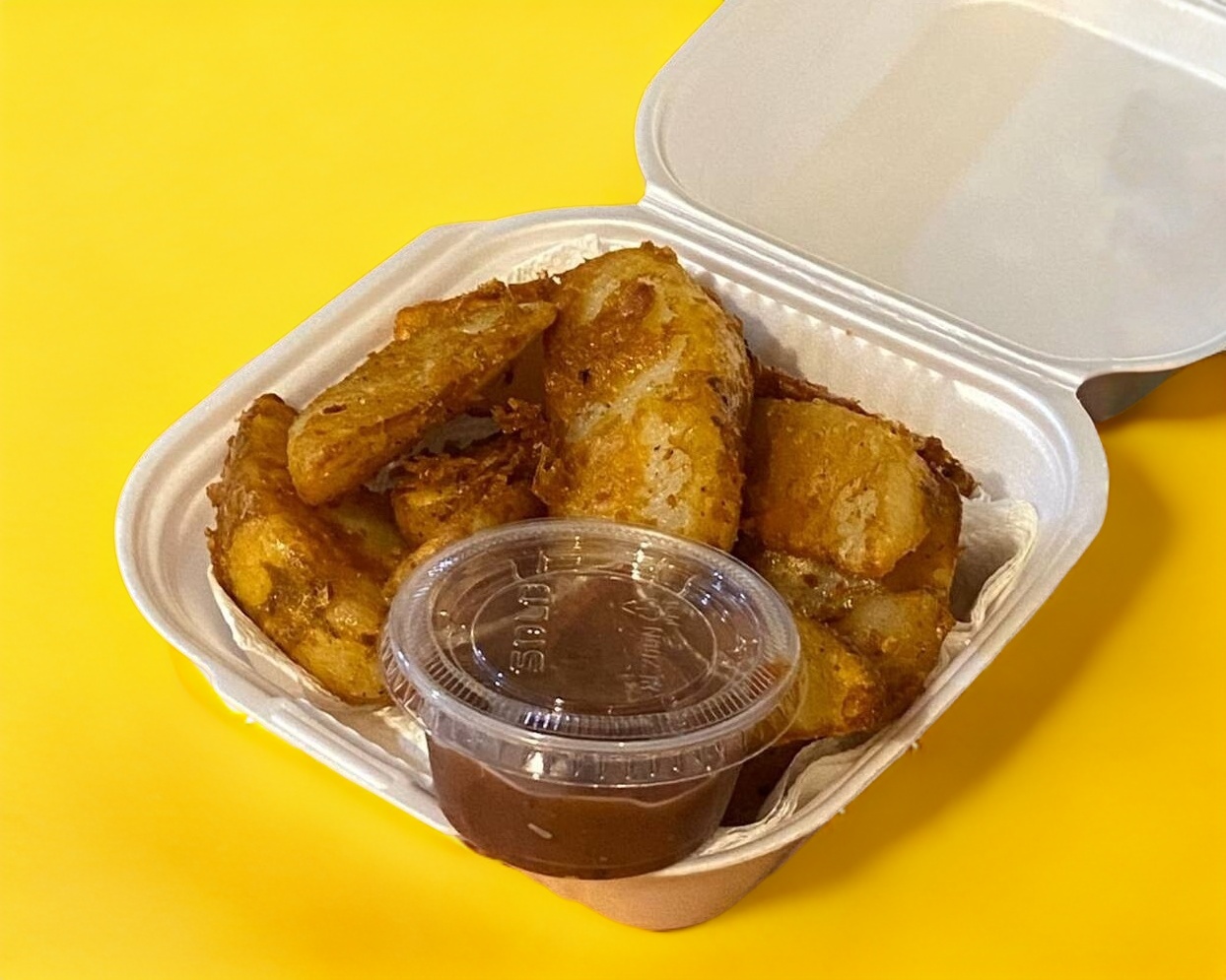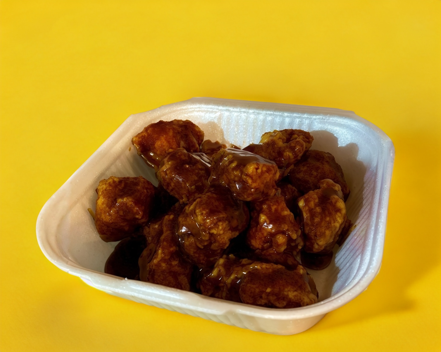 Pequeñas porciones de pollo empanizadas y fritas hasta quedar crujientes.