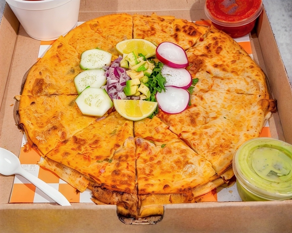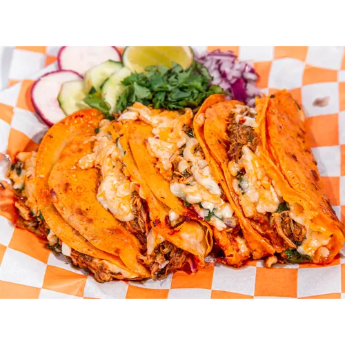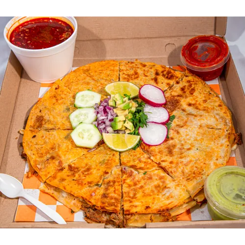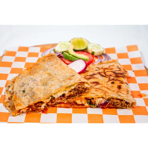 Triple tortilla con queso mozarella, Birria 8 rebanadas