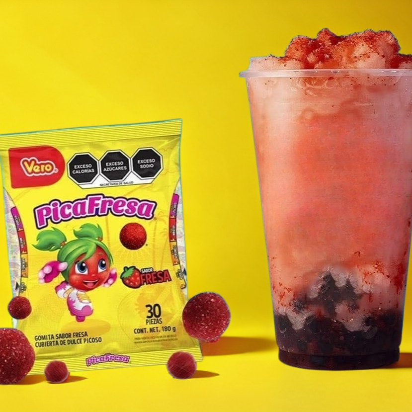Fresa natural, pica fresa, chamoy, miguelito y perlas explosivas de chamoy
