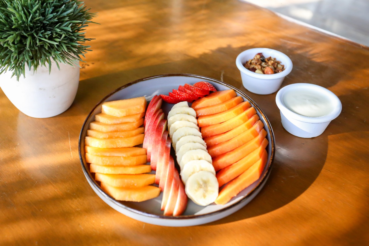 Mezcla de manzana plátano, papaya, melón, fresa. Con yogurt natural y granola