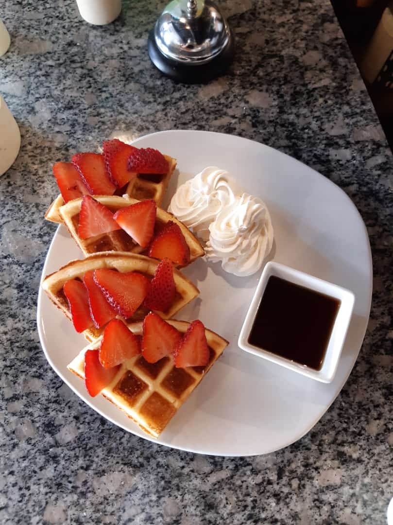 Deliciosos waffles o hotcakes servidos con miel y mantequilla. 3 ingredientes a escoger (fresa, plátano, nuez, mermelada de fresa, chispas de chocolate, cajeta, crema de cacahuate, helado de vainilla o Nutella)