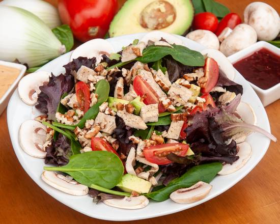 Lechugas mixtas, tomate cherry, champiñones, aguacate, nuez