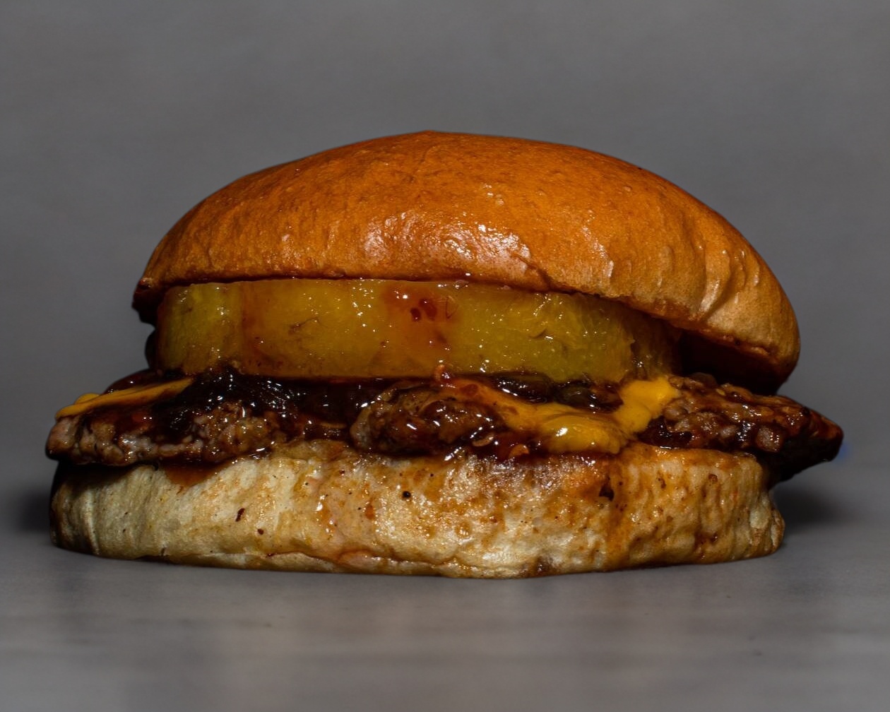 120 Gr. de jugosa carne de res, queso americano, piña, chipotle dulce y cebolla caramelizada.