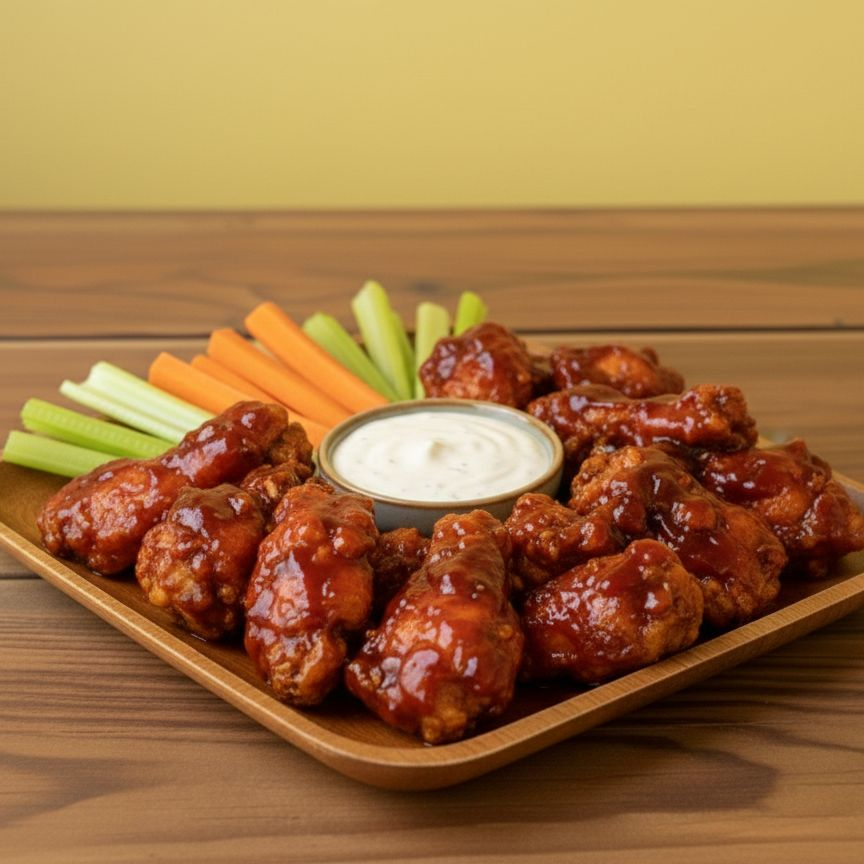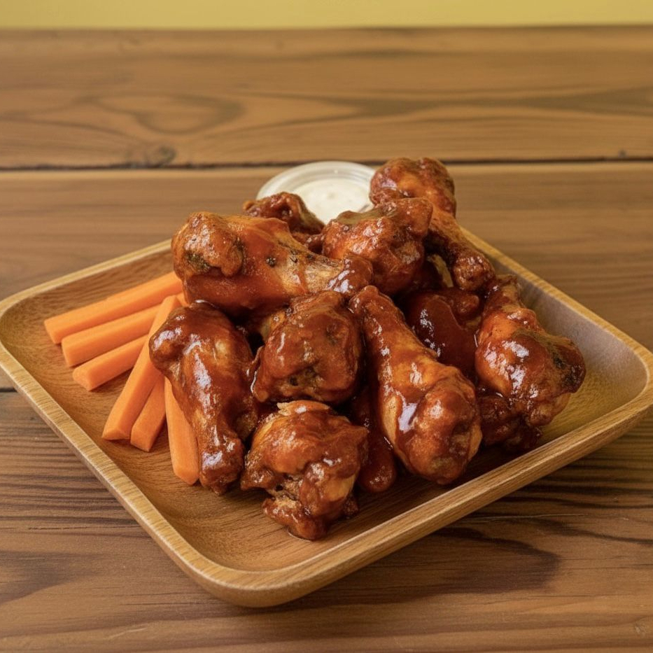 Acompañadas de palitos de zanahoria y apio con aderezo ranch.