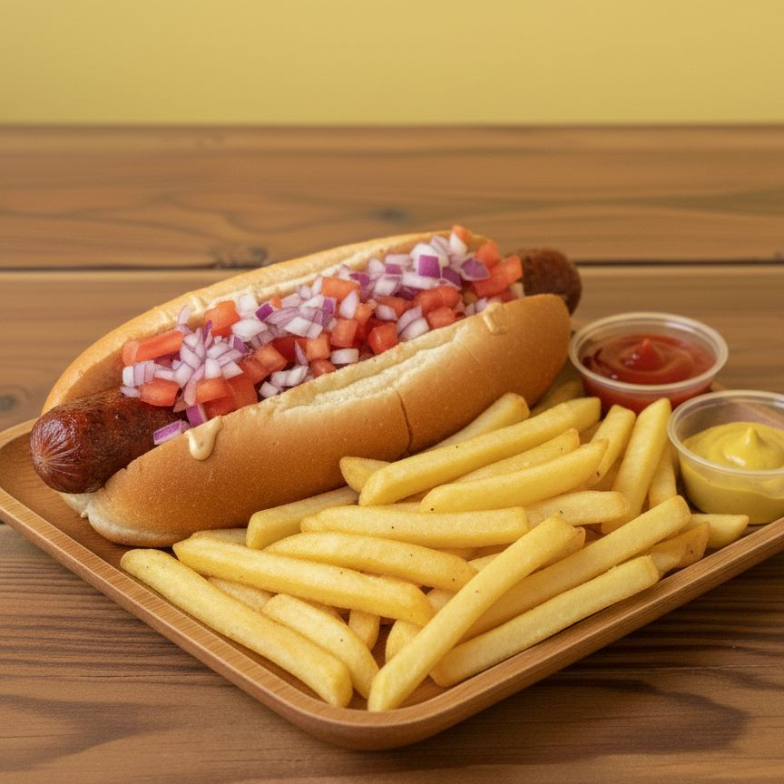 Acompañada de papas a la frencesa y aderezo de chipotle y serrano.