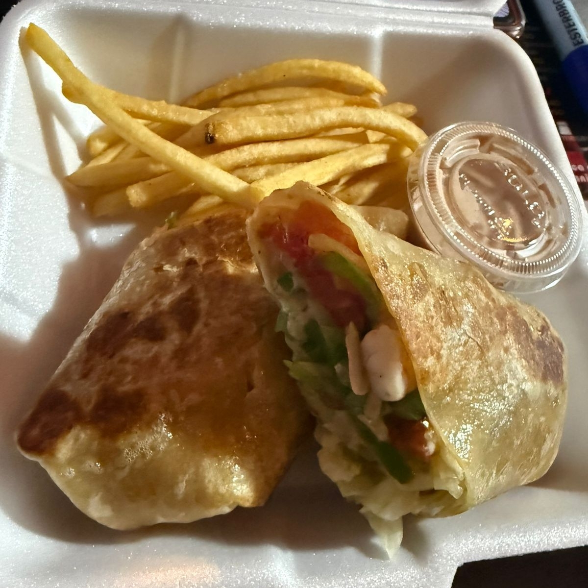 120 grs de rico camaron, Cebolla morena verde, Jitomate, lechuga y Queso Gouda, Acompañado de Papas Fritas