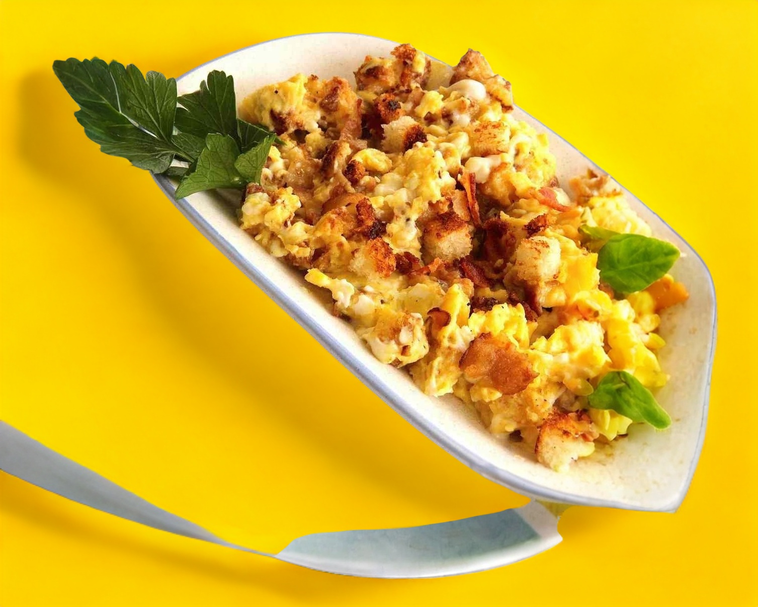 Huevos revueltos acompañados de delicioso tocino.